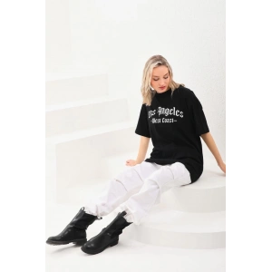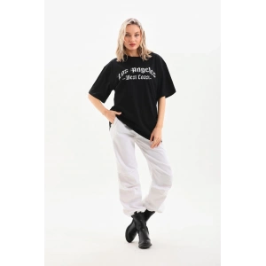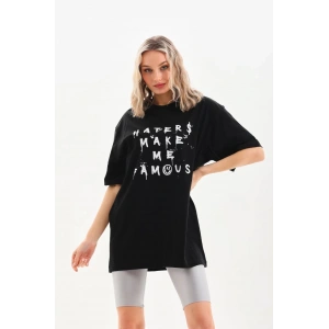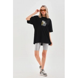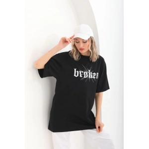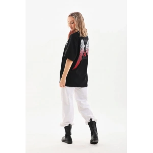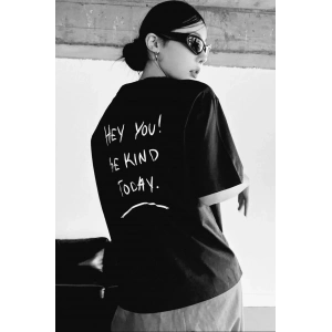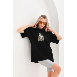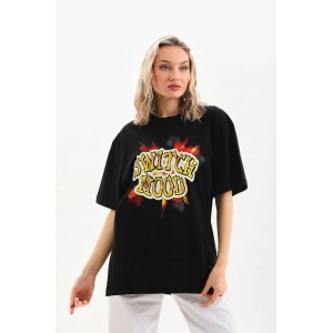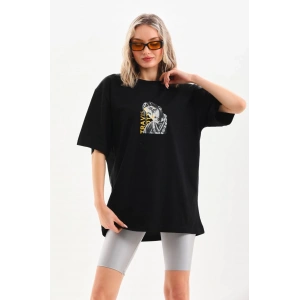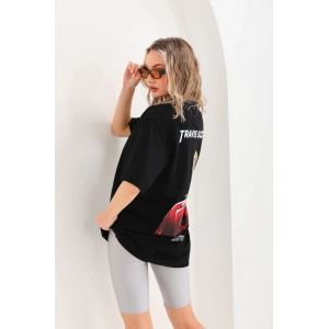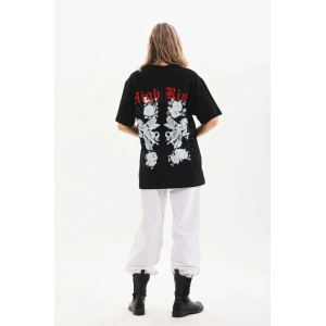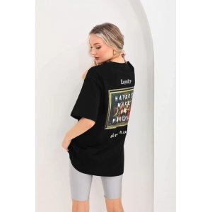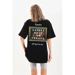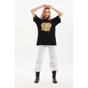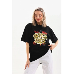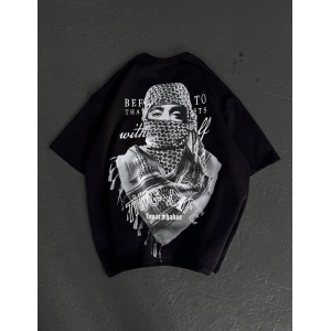 UNİSEX BASKILI OVERSİZE T-SHİRT - SİYAH