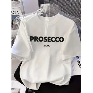 20/1 PENYE COMPACK BASKILI OVERSİZE KISA KOL BİSİKLET YAKA T-SHİRT - BEYAZ