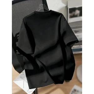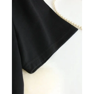 20/1 PENYE COMPACK BASKILI OVERSİZE KISA KOL BİSİKLET YAKA T-SHİRT - SİYAH