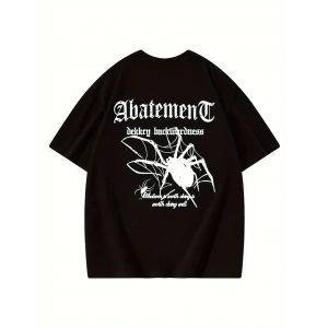ÖRÜMCEK AĞI DESENLİ BASKILI OVERSİZE BİSİKLET YAKA T-SHİRT - SİYAH