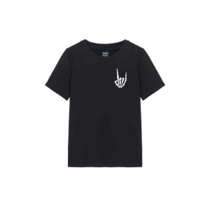 KADIN BİSİKLET YAKA KISA KOL BASKILI T-SHİRT - SİYAH