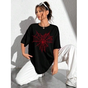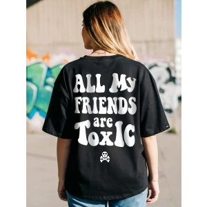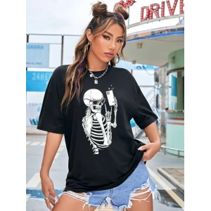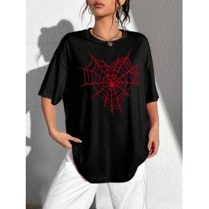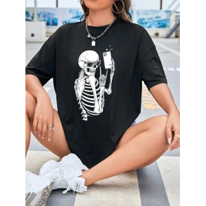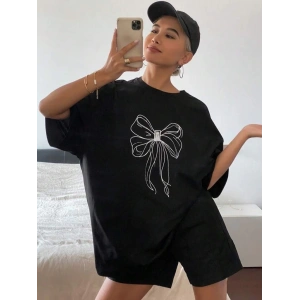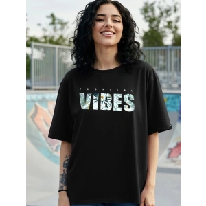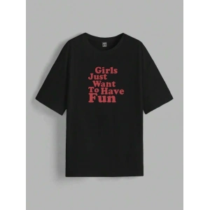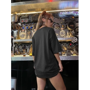 KADIN BASKILI OVERSİZE T-SHİRT - SİYAH