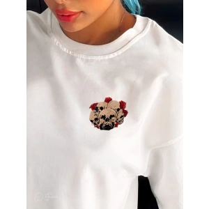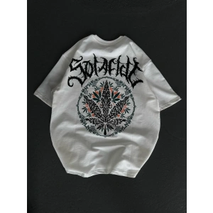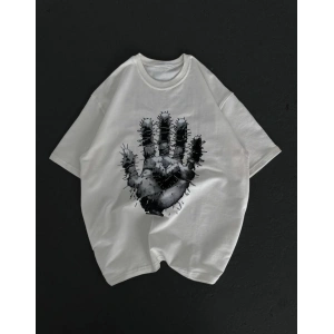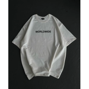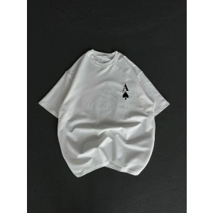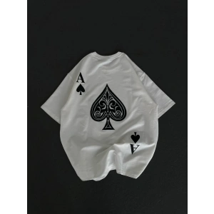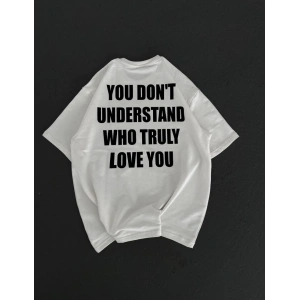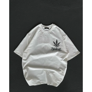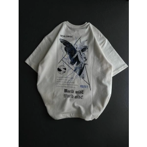 UNİSEX BİSİKLET YAKA BASKILI OVERSİZE T-SHİRT - BEYAZ