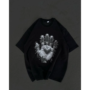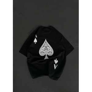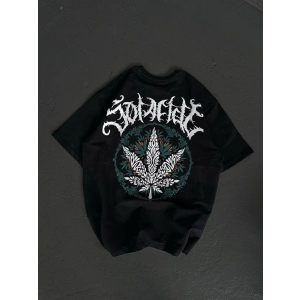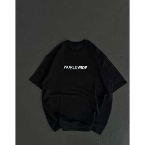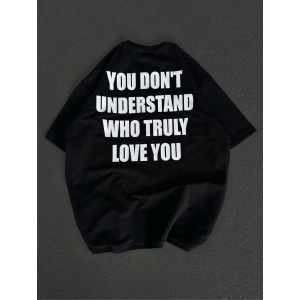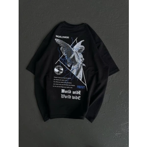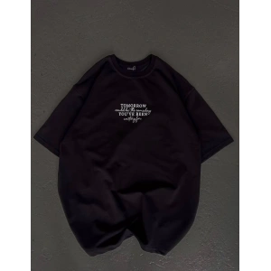 UNİSEX BİSİKLET YAKA BASKILI OVERSİZE T-SHİRT - SİYAH