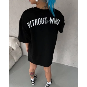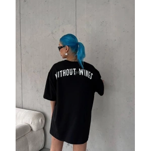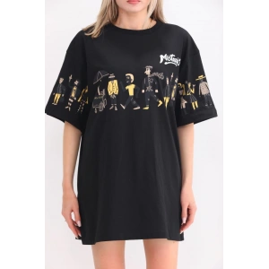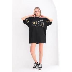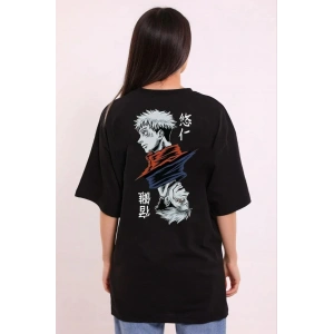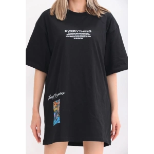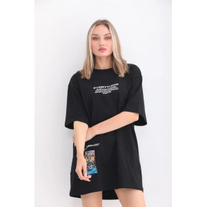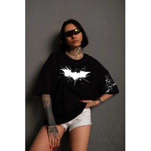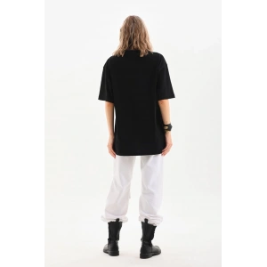 UNİSEX BİSİKLET YAKA BASKILI OVERSİZE T-SHİRT - SİYAH