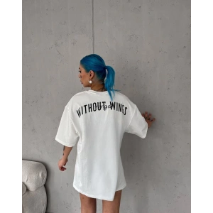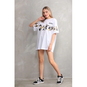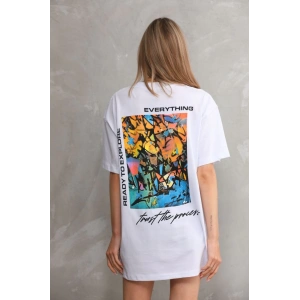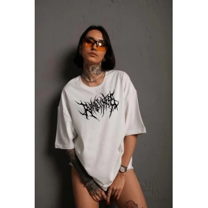 UNİSEX ÖN VE KOL BASKILI OVERSİZE T-SHİRT - BEYAZ