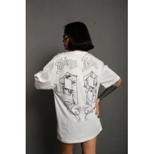 UNİSEX BİSİKLET YAKA BASKILI OVERSİZE T-SHİRT - BEYAZ