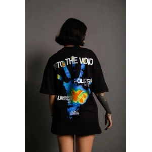 UNİSEX BİSİKLET YAKA BASKILI OVERSİZE T-SHİRT - SİYAH