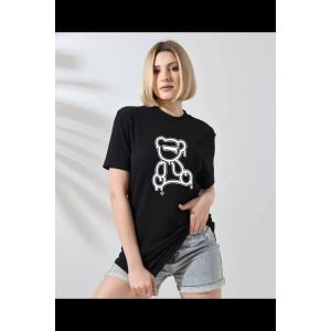 UNİSEX KADIN BİSİKLET YAKA BASKILI T-SHİRT - SİYAH