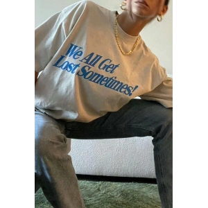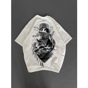 Unisex Baskılı Oversize T-Shirt - Beyaz