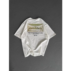Unisex Taş Desenli Oversize T-Shirt - Beyaz