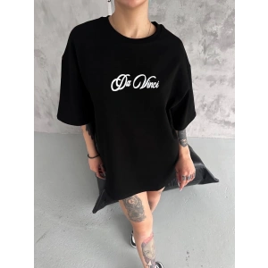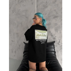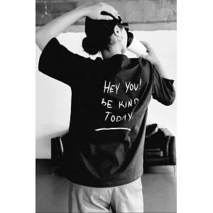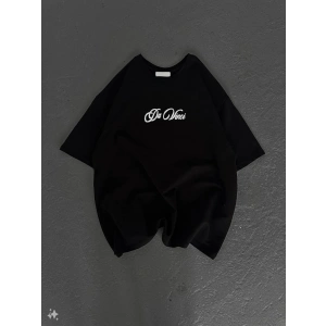 Unisex Baskılı Oversize T-Shirt - Siyah