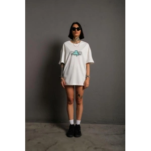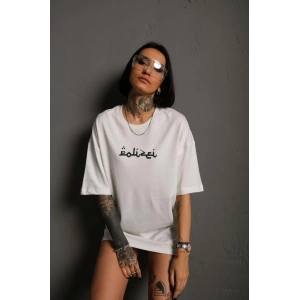 Unisex Baskılı Oversize T-Shirt - Beyaz