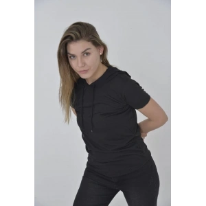Kadın Kapşonlu Slim Fit T-shirt - Siyah