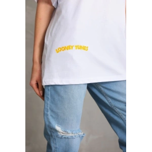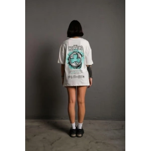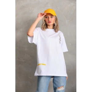Kadın Bisiklet Yakalı Sırt Baskılı Oversize T-Shirt - Beyaz
