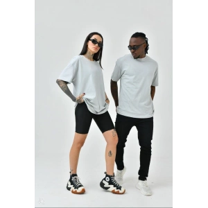 Unisex Basic Bisiklet Yaka Oversize T-Shirt - Boyalı Gri