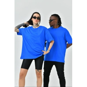 Unisex Basic Bisiklet Yaka Oversize T-Shirt - Mavi