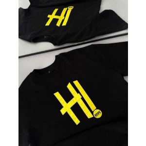 Unisex Baskılı Yarım Fermuarlı T-Shirt - Siyah