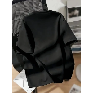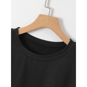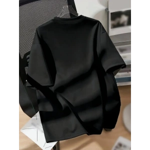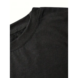20/1 Penye Compack Baskılı Oversize Bisiklet Yaka Kısa Kol T-shirt - Siyah
