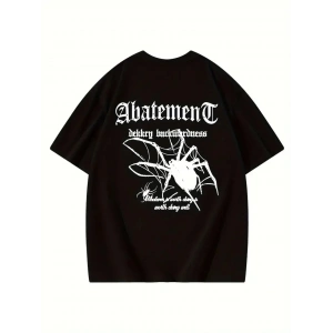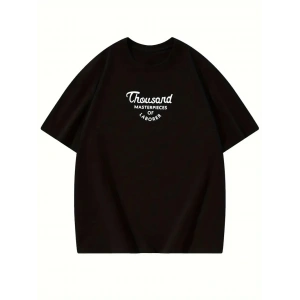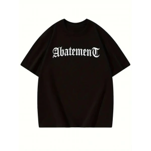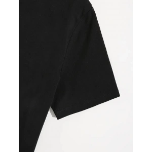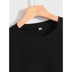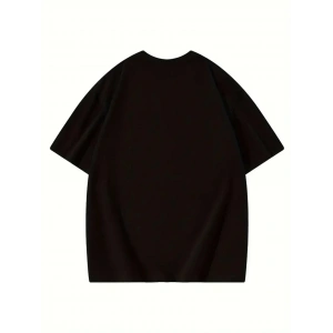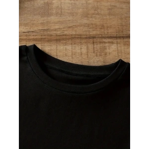 20/1 Penye Compack Baskılı Oversize Kısa Kol Bisiklet Yaka T-shirt - Siyah