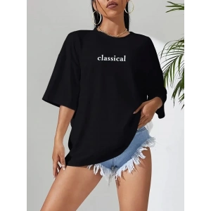 20/1 Penye Compack Classical Baskılı Siyah Oversize Tişort - Siyah