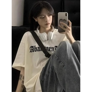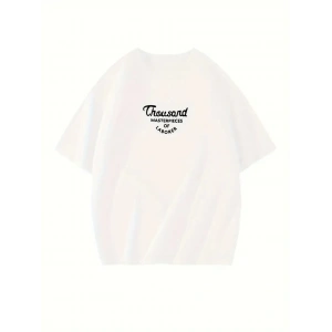 20/1 Penye Compack Baskılı Oversize Kısa Kol Bisiklet Yaka T-shirt - Beyaz