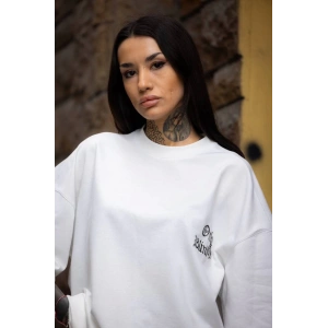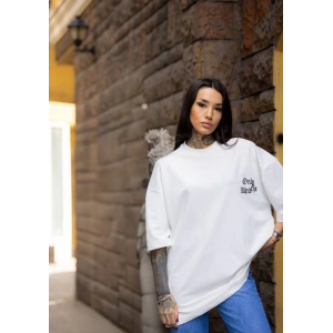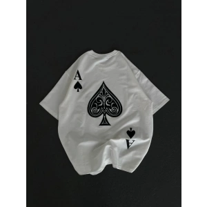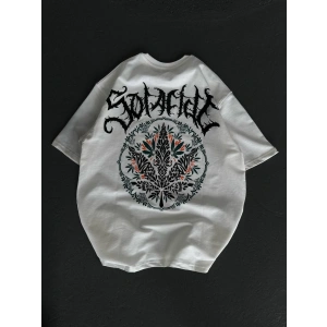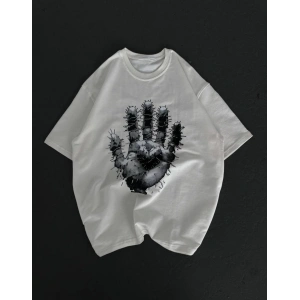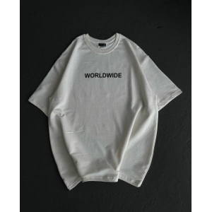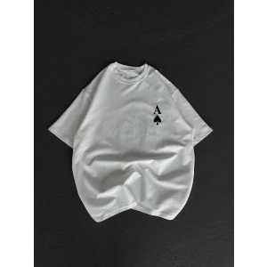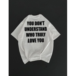 Unisex Bisiklet Yaka Baskılı Oversize T-Shirt - Beyaz