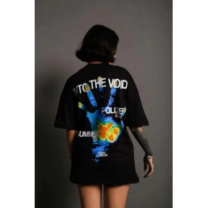 Unisex Bisiklet Yaka Baskılı Oversize T-Shirt - Siyah