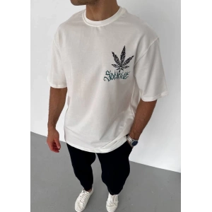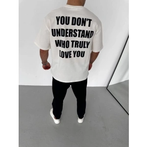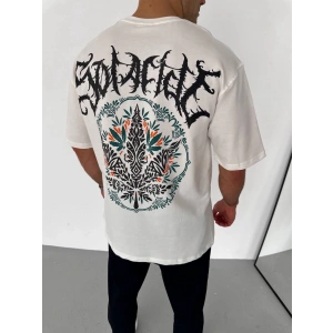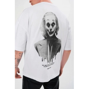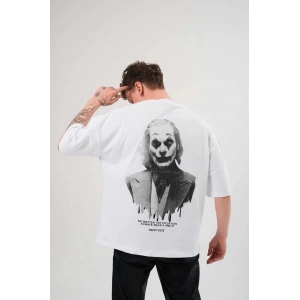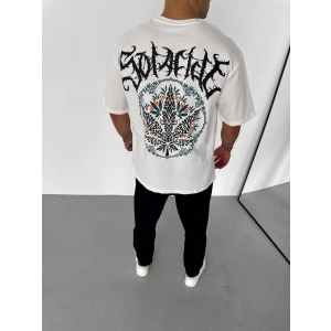 Unisex Ön ve Kol Baskılı Oversize T-shirt - Beyaz