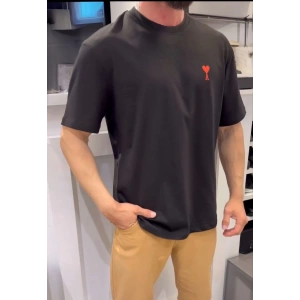 Unisex Göğüs File Aksesuarlı T-shirt - Siyah