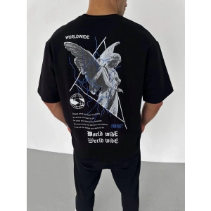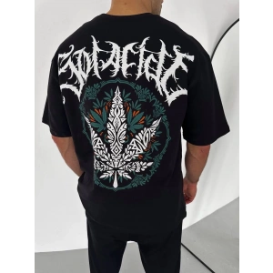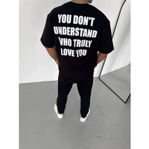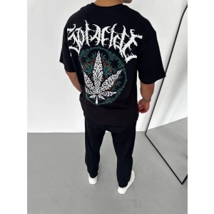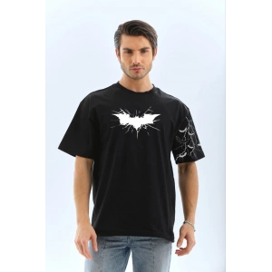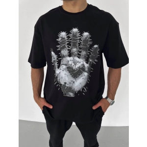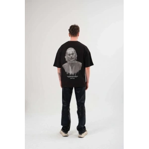 Unisex Ön ve Kol Baskılı Oversize T-shirt - Siyah