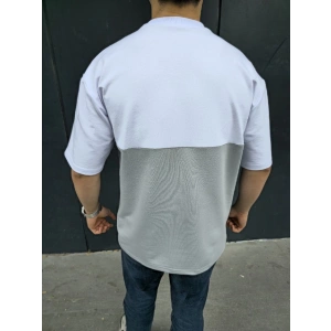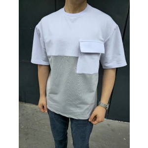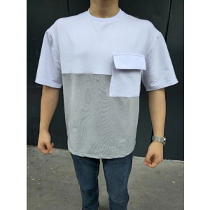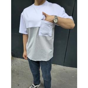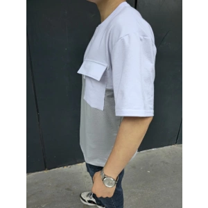 Unisex Torba Cep Detaylı Parçalı T-Shirt - Gri