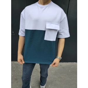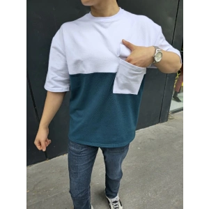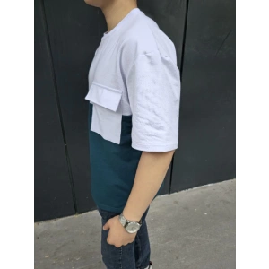 Unisex Torba Cep Detaylı Parçalı T-Shirt - Lacivert