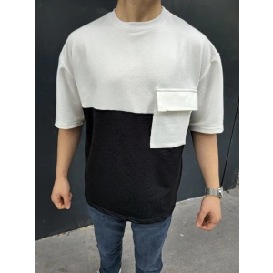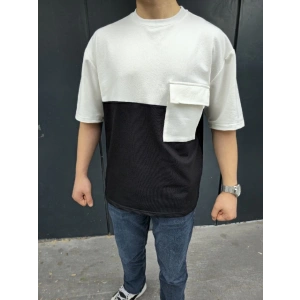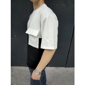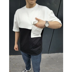 Unisex Torba Cep Detaylı Parçalı T-Shirt - Siyah