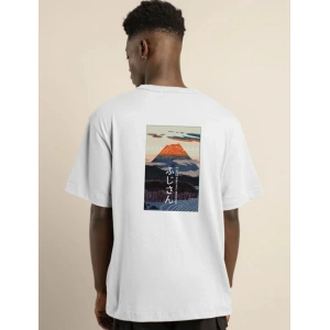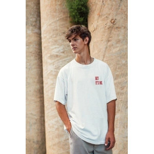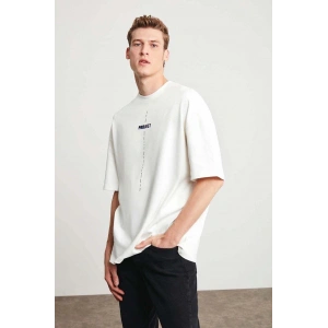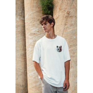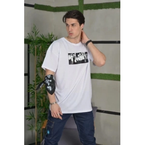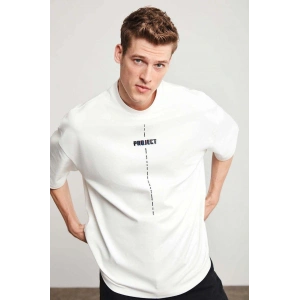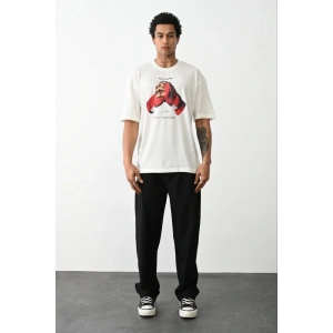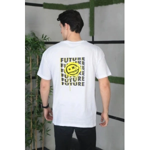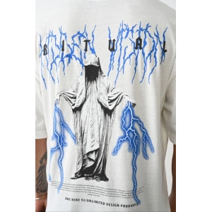 Unisex Bisiklet Yaka Oversize Baskılı T-Shirt - Beyaz
