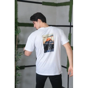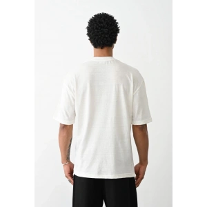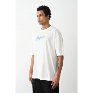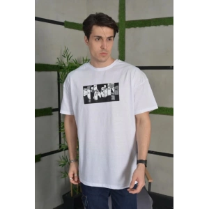 Unisex Baskılı Oversize T-Shirt - Beyaz