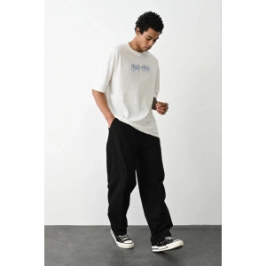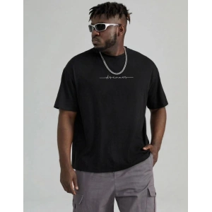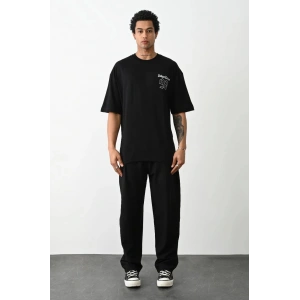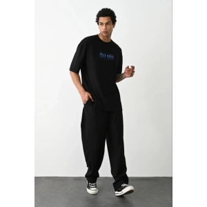 Unisex Bisiklet Yaka Oversize Baskılı T-Shirt - Siyah