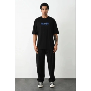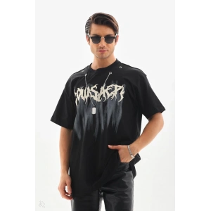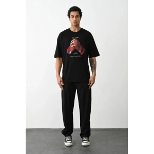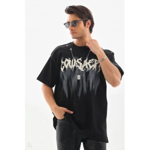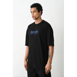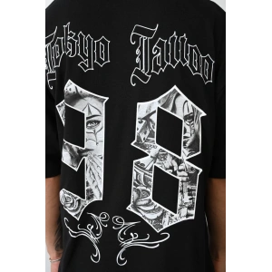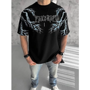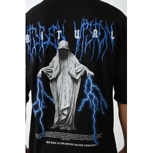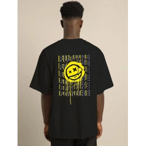 Unisex Baskılı Oversize T-Shirt - Siyah