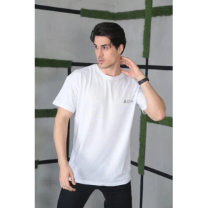 Unisex Bisiklet Yaka Baskılı Oversize T-Shirt - Beyaz