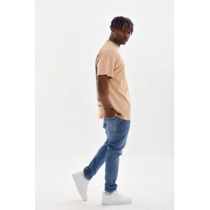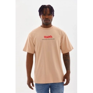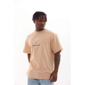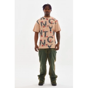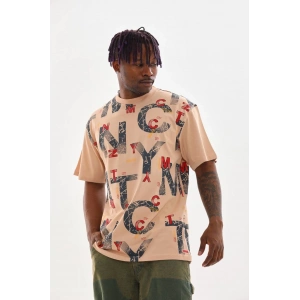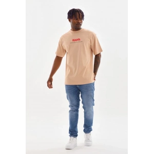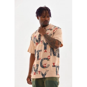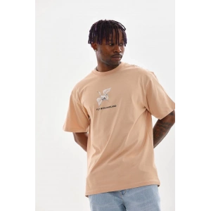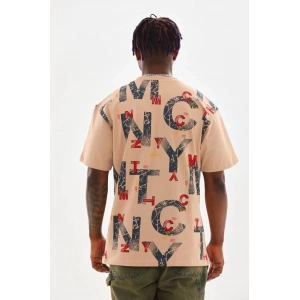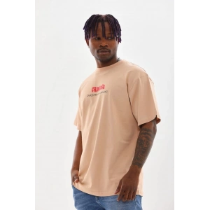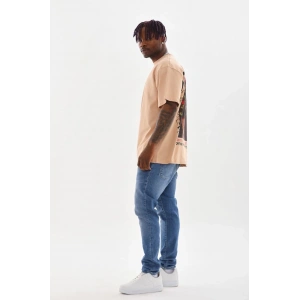 Unisex Baskılı Oversize T-Shirt - Bej
