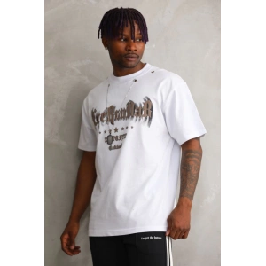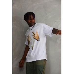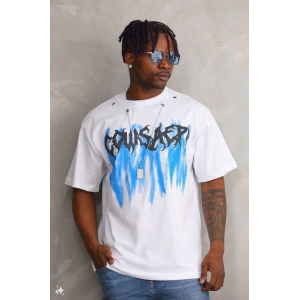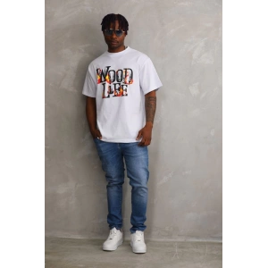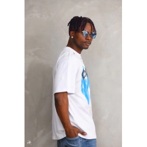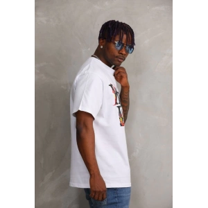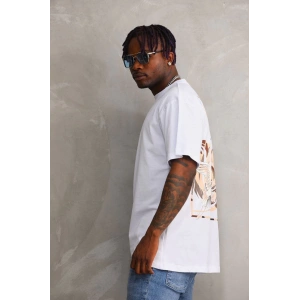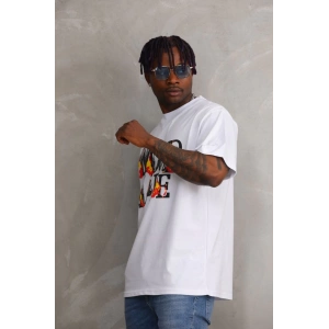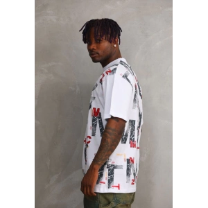 Unisex Baskılı Oversize T-Shirt - Beyaz