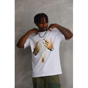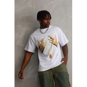 Unisex Oversize Kolye Dahil T-Shirt - Beyaz