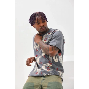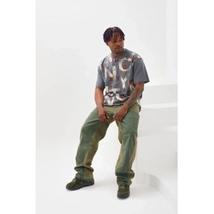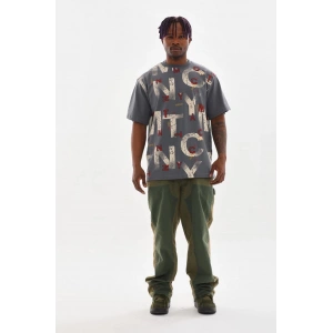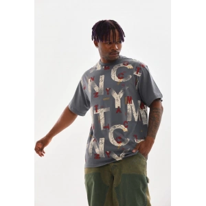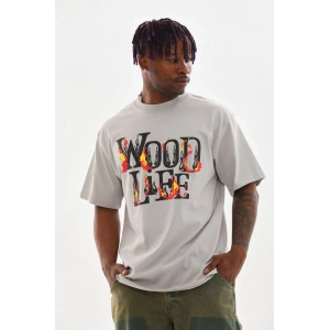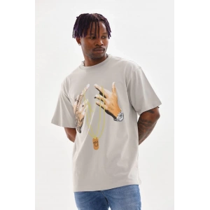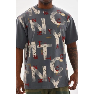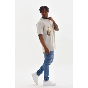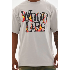 Unisex Baskılı Oversize T-Shirt - Gri