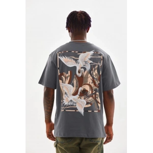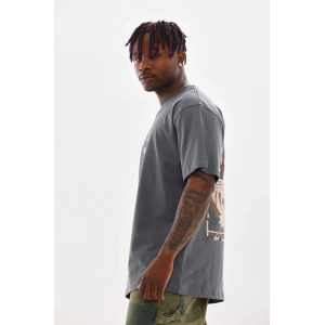 Unisex Baskılı Oversize T-Shirt - Füme