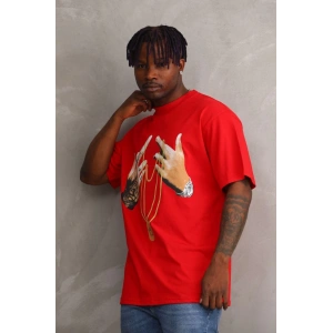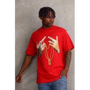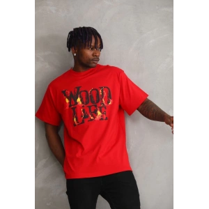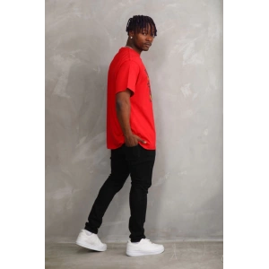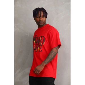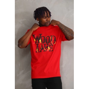 Unisex Baskılı Oversize T-Shirt - Kırmızı