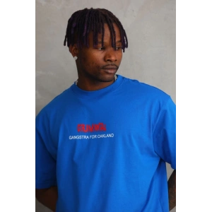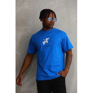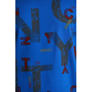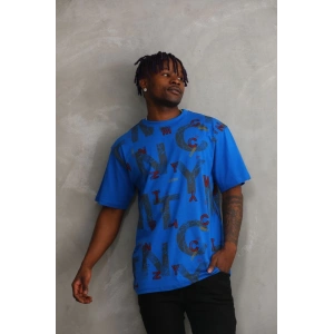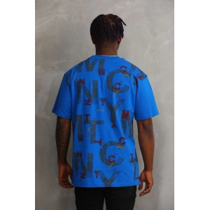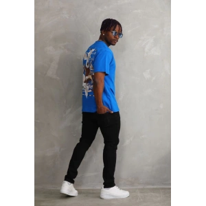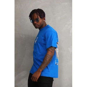 Unisex Baskılı Oversize T-Shirt - Mavi