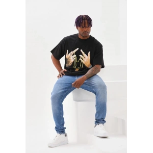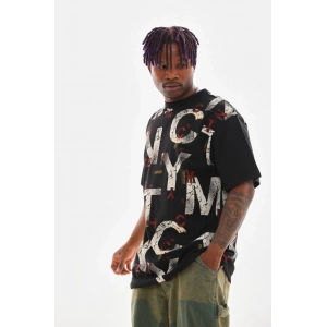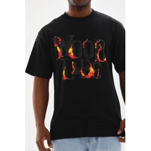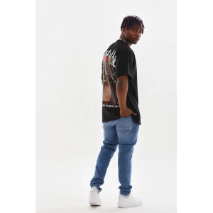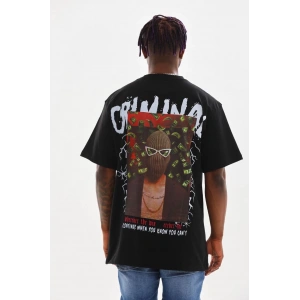 Unisex Baskılı Oversize T-Shirt - Siyah