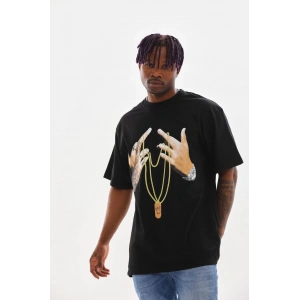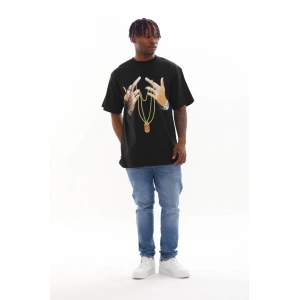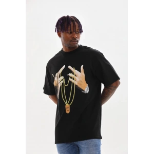 Unisex Oversize Kolye Dahil T-Shirt - Siyah
