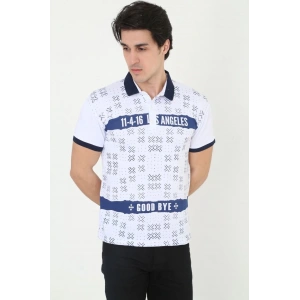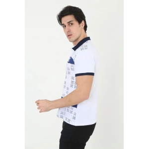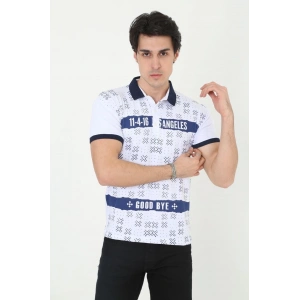 Erkek Yakalı Slim Fit Baskılı T-Shirt - Beyaz