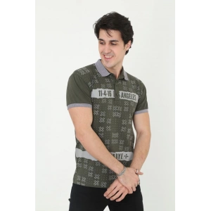 Erkek Yakalı Slim Fit Baskılı T-Shirt - Haki